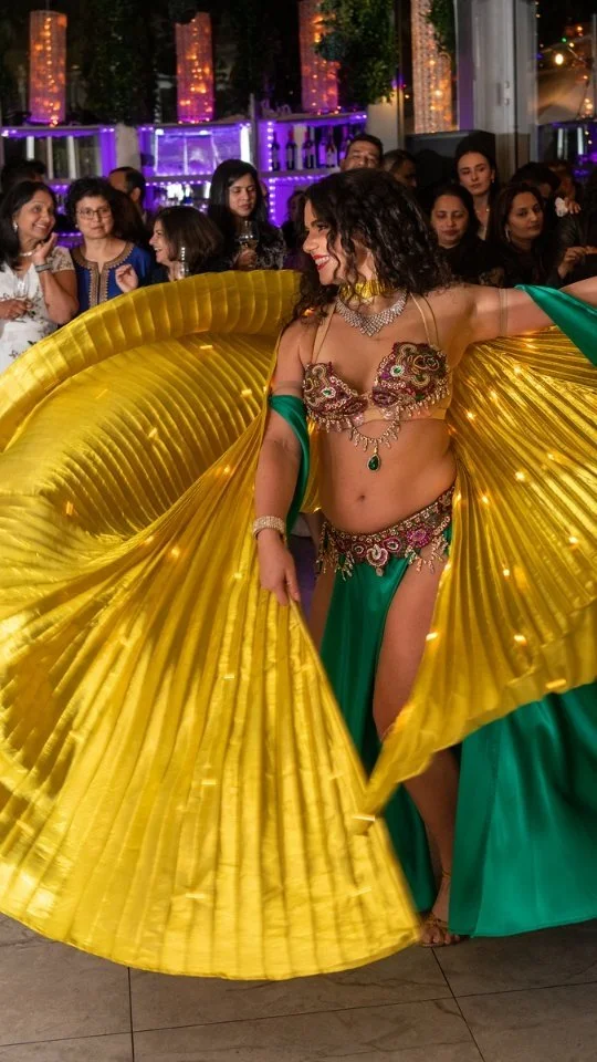 She takes care to customise her shows to suit the event and ethnicity of the audience to make sure every guest feels seen and welcome. Whether it’s an Egyptian Wedding Entrance Zaffe or an Indian Diwali celebration, she brings culture and authenticity to every show.